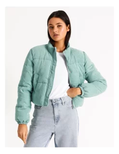 Discount 🌟 Miss Shop Cropped Cord Puffer Jacket In Dew Drop 👏