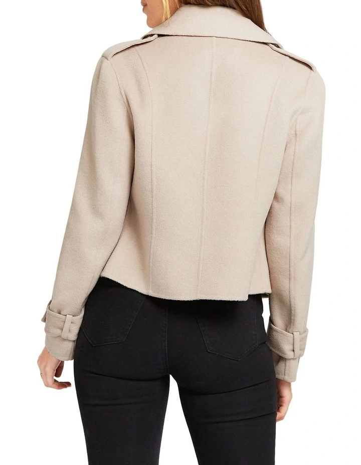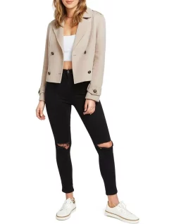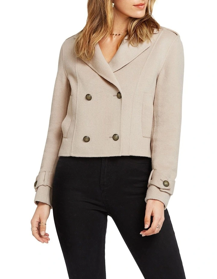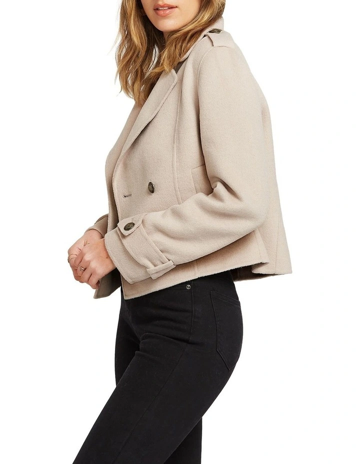 Keep it short with theΒ Better Off Military PeacoatΒ with this cropped outerwear look. Featuring a streamlined cut and metal vintage inspired buttons, this coat will still highlight your killer outfit underneath.