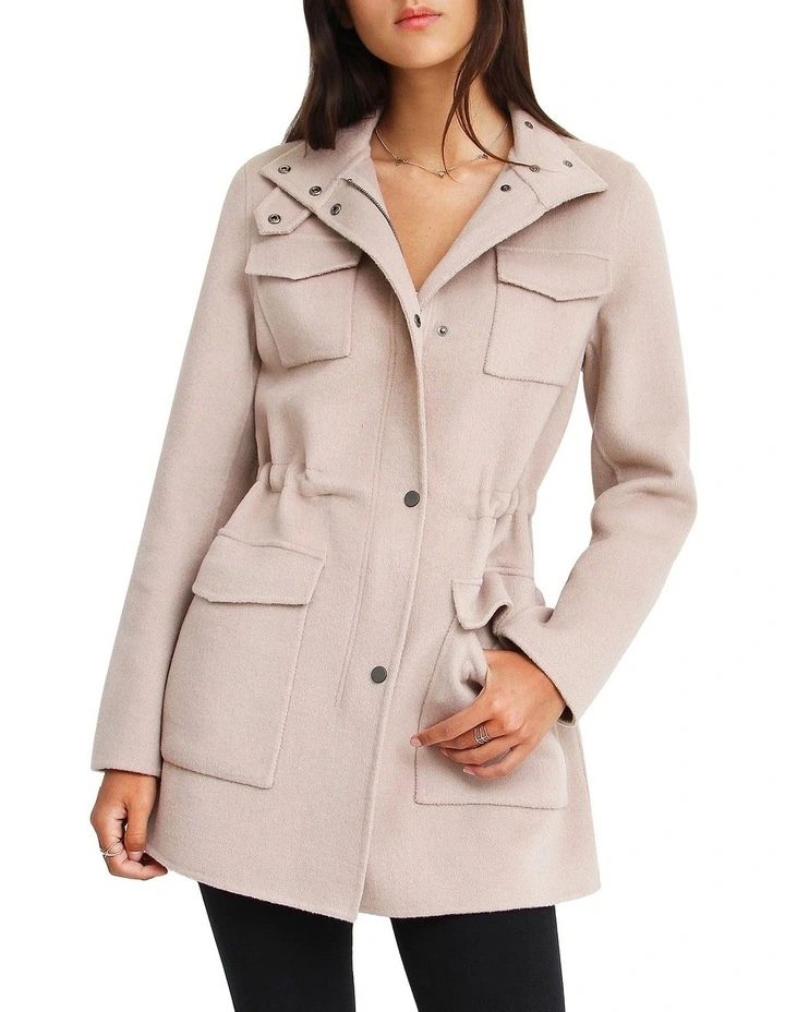 A more refined version of a classic style, theΒ Heartbreaker Wool Blend Utility CoatΒ winterises the utilitarian style in double-brushed wool. The adjustable elastic waist gives you the option to wear it fitted or loose.