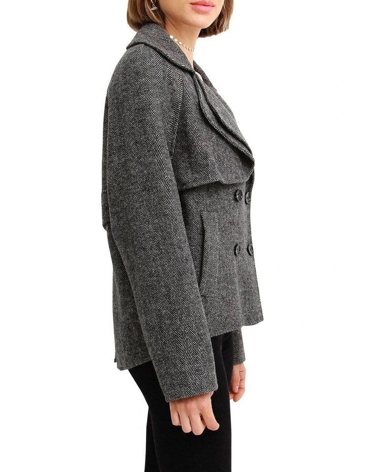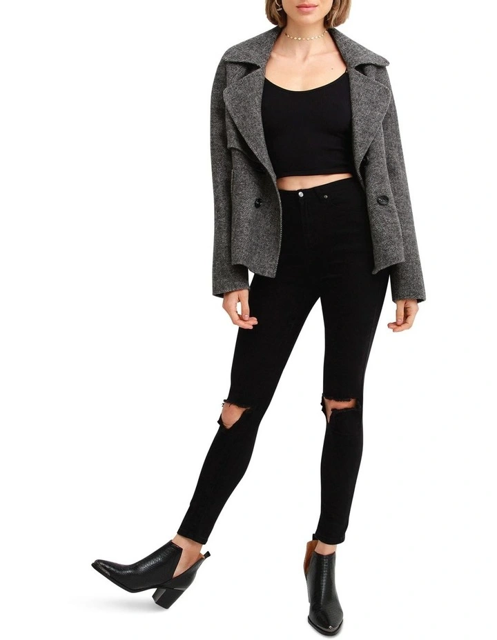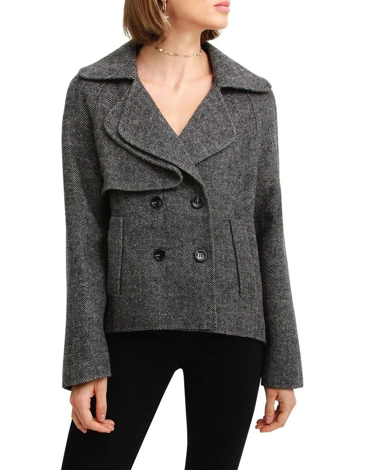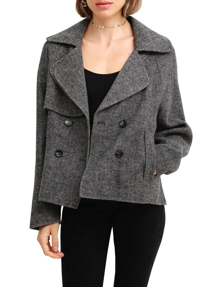 Keep it short with the Im Yours Wool Blend PeacoatΒ with its oversized cropped outerwear look. Featuring an oversized collar and novelty buttons, this coat will still highlight your killer outfit underneath.