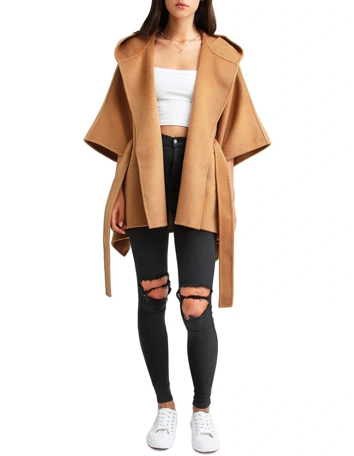 Everyones favourite throw on style, theΒ Jackson Landing Wool Blend Cape CoatΒ can comfortably fit anyone with its self-tie belt and open sleeves. Practical and easy, this statement piece is a must for this winter.