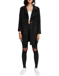 Our model is wearing a size small coat. She usually wears size AU 8 and is 178cm (510) tall with a 76cm (30) bust, a 59cm (23) waist and 89cm (35) hips.