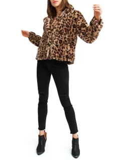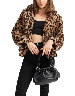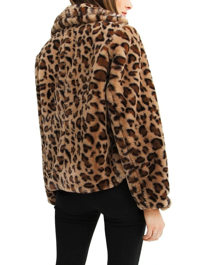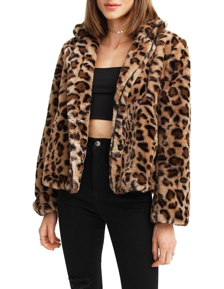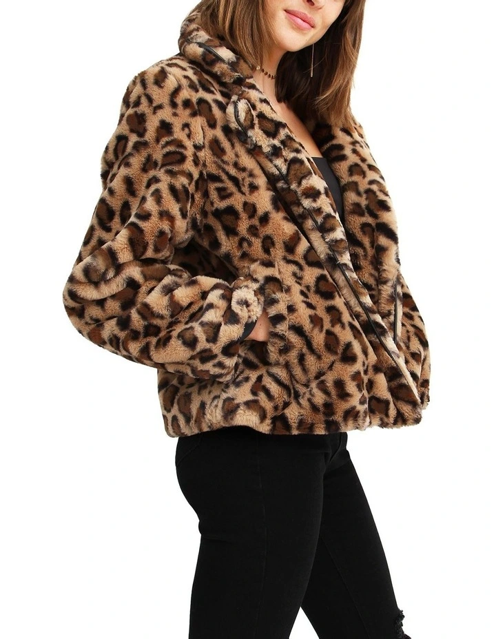 Be fierce and bold in theΒ Last Call Leopard Faux Fur JacketΒ with its pleather details and printed lining. This glam piece is very soft and comfortable in a loose fit that uplifts any evening look.