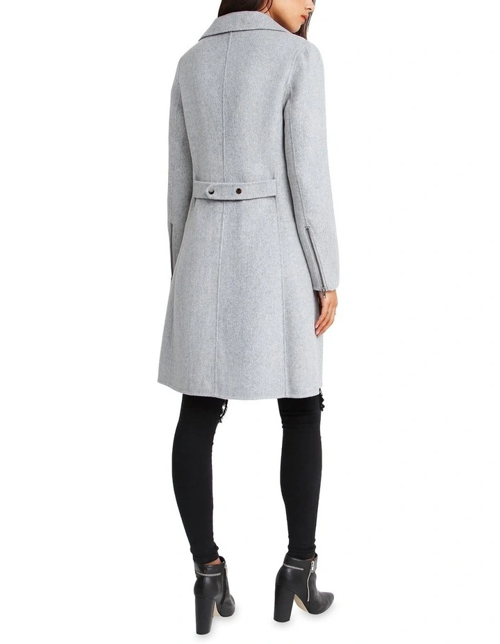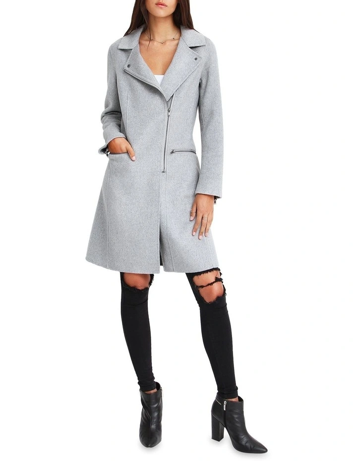 Merging the sleek styling of a motorcycle jacket cut in a fitted, knee length coat, theΒ Last Chance Wool Blend Moto CoatΒ is decked out with all the hardware details. This longer style is super versatile across seasons and occasions, pairing perfectly with both workwear or a night out.