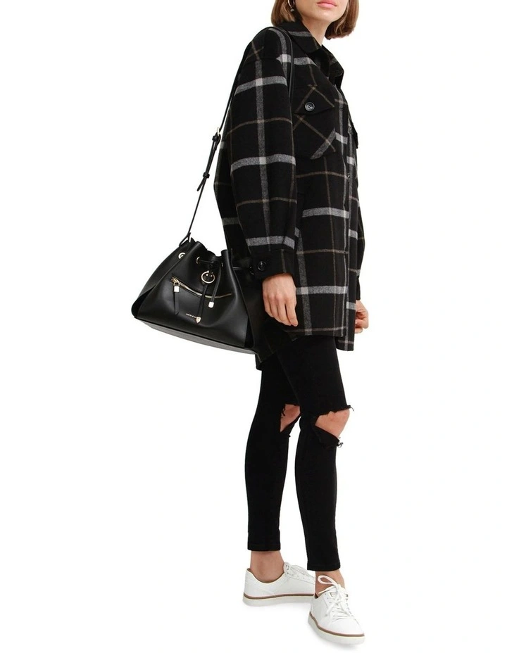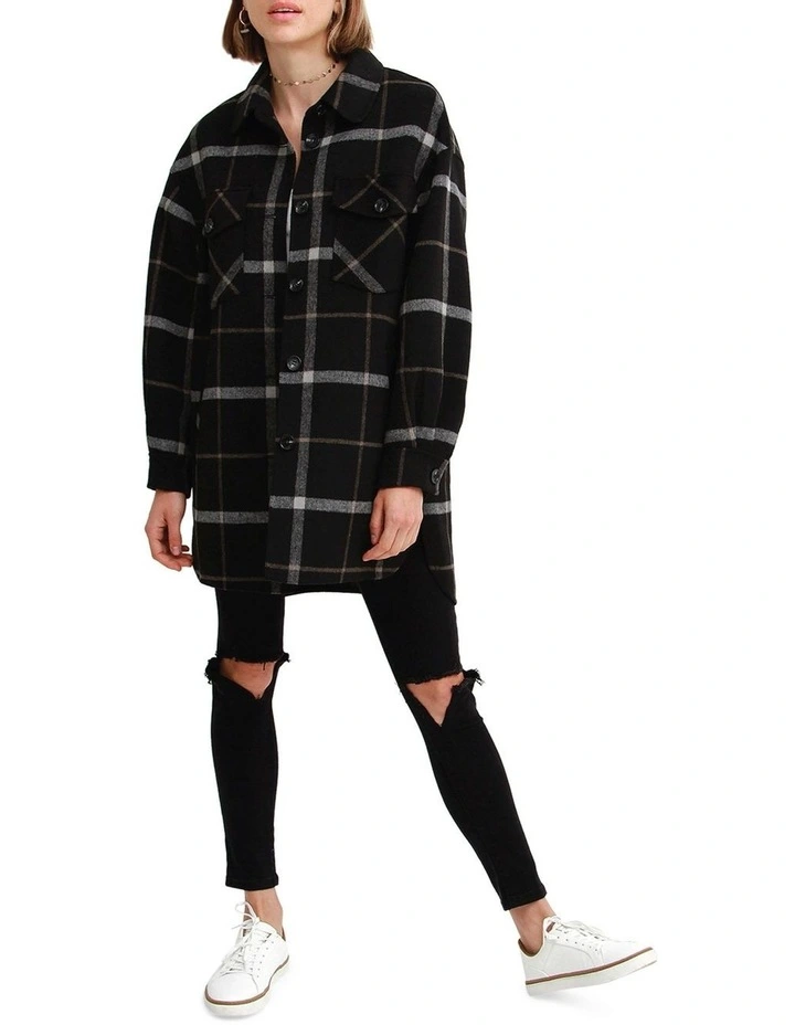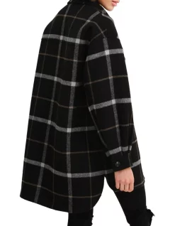 Inspired by the great outdoors, the Rivers Edge Plaid Shacket, brings shirt style elements into a wool blend coat. This effortless style features plenty of pockets in a contemporary, oversized cut.
