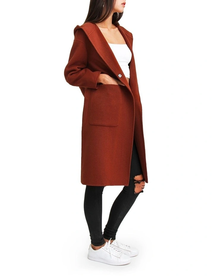 Crafted from a wool blend in a laid-back hooded silhouette,Β Walk This Way CoatΒ is the essence of the smart-casual style that can be dressed up and down for any occasion. Hidden snap buttons, cropped sleeves and an oversized fit are the signature features of this gorgeous style. Boots or sneakers, jeans or boho dress – now you can elevate any look with this high quality, relaxed coat.