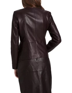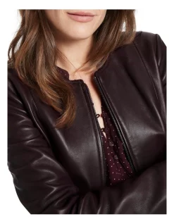 Made from New Zealand lambskin leather, this exquisitely styled leather jacket creates a softly tailored look, using panel shaping to flatter within a slim fit. Fully lined, the jacket reveals a rich fig brown colouring, further accentuated by an exposed metal zip front fastening with feature zip-pull, and handy front pockets hidden in the side seams.