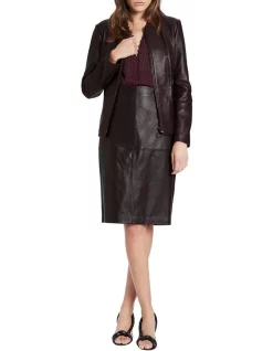 Beautifully tailored, this dark khaki leather jacket uses clever panelling to flatter within a slim fit, revealing a neat silhouette with wrap-over front closure. Fully lined, the jacket feels gorgeously soft in buttery leather, flaunting further detail in its asymmetrically placed front zip and open lapel design, finished with zipped pocketing at the waist.