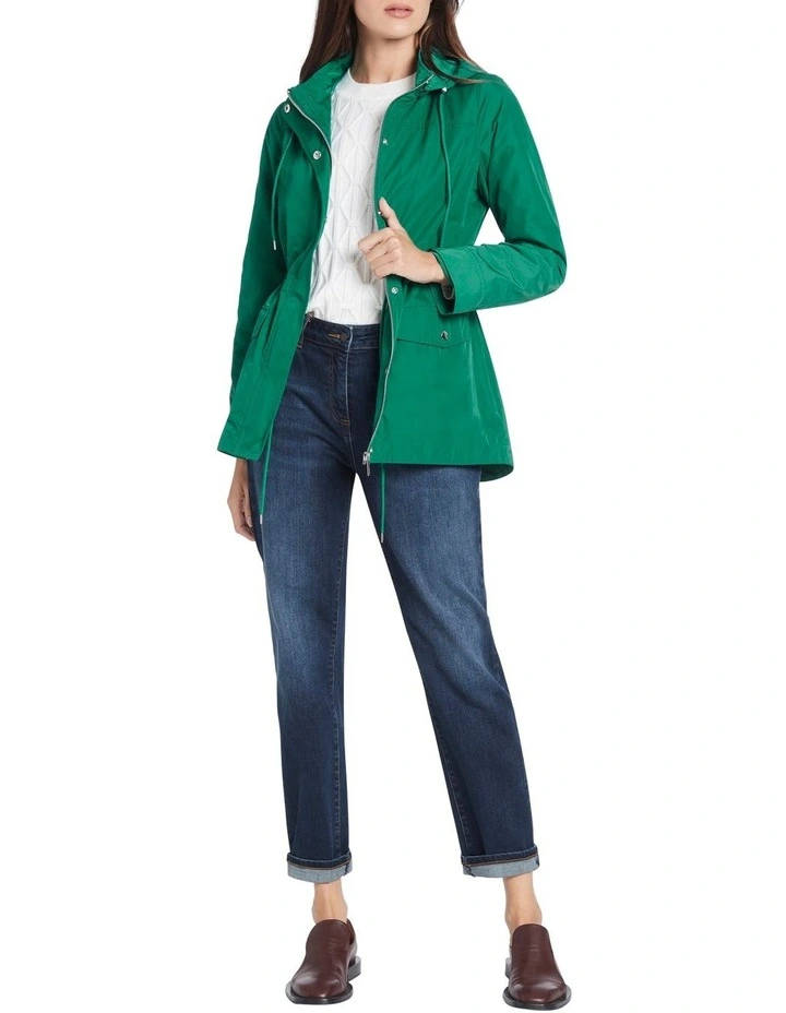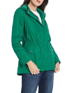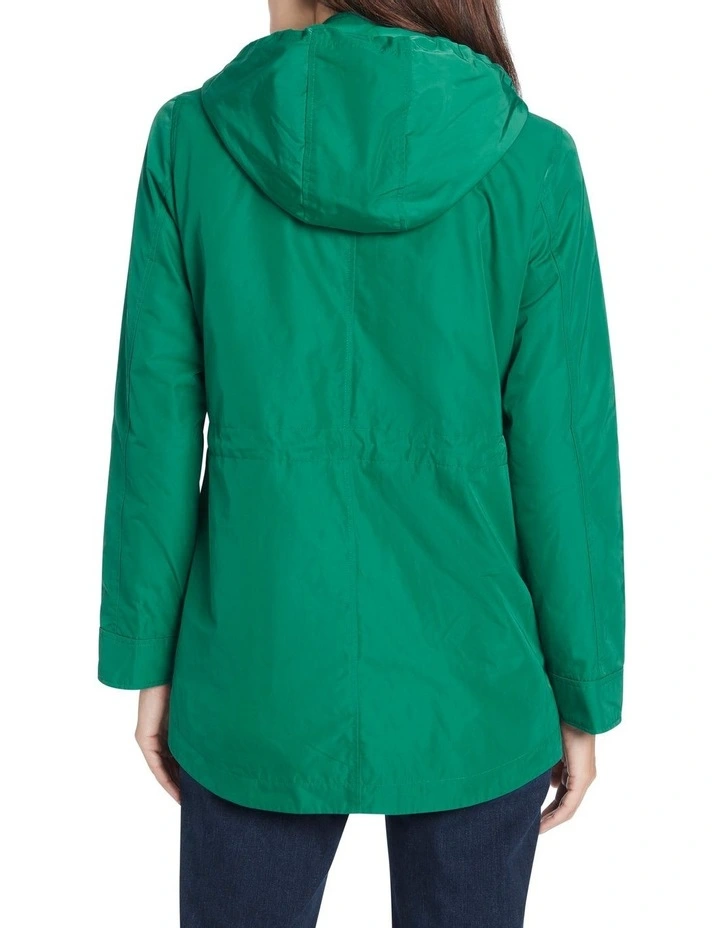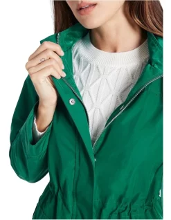 Flaunting anorak styling with a full drawstring waist, this lightweight coat reveals a vibrant shamrock green that will be easy to pair back within your wardrobe. Fully lined for additional warmth, the coat fastens at the front with a concealed zip and snap button closure, while offering further detail in its drawstring hood and button-down flap patch pockets at the hip.Β