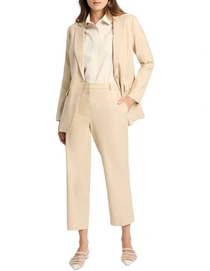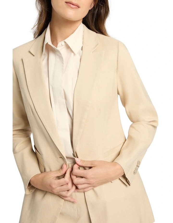 Feeling undeniably summery, this softly tailored blazer flows through an effortless linen blend, to reveal a neutral macchiato colouring. Immaculate in its single breasted design, the blazer creates a longline silhouette, perfectly accentuated by feature pocketing at the hip, button-up cuffs and a neat collar and lapel.