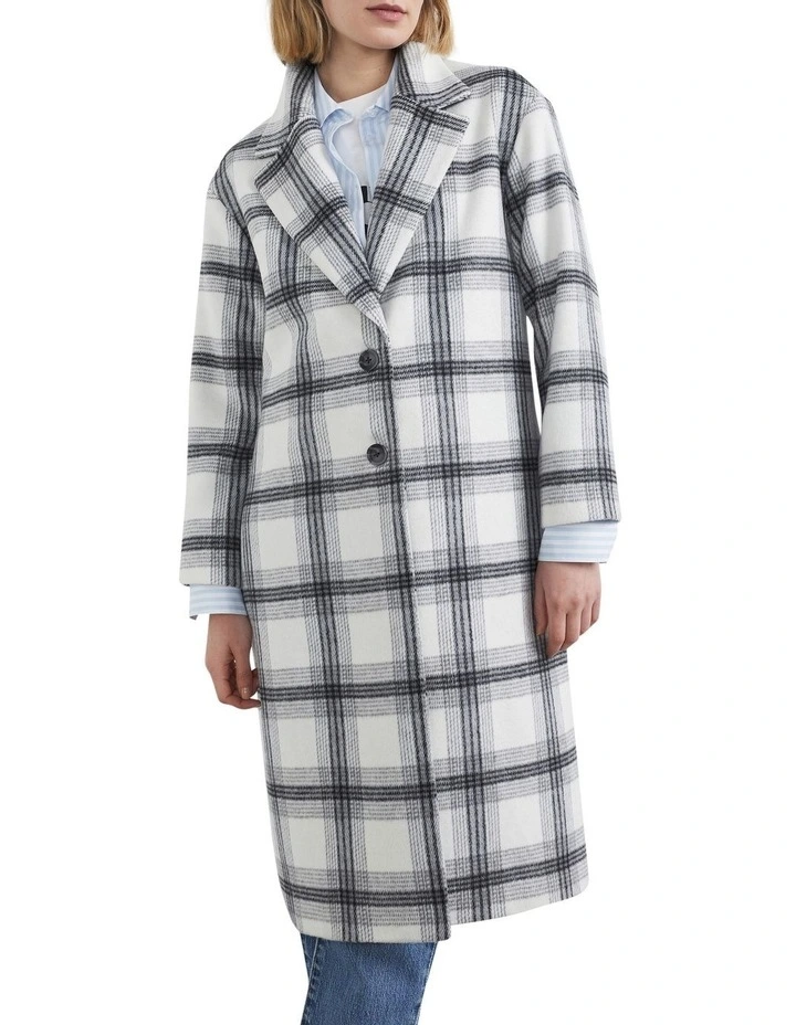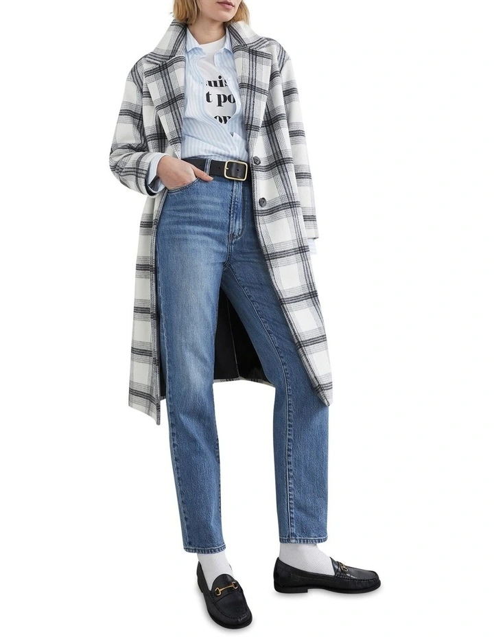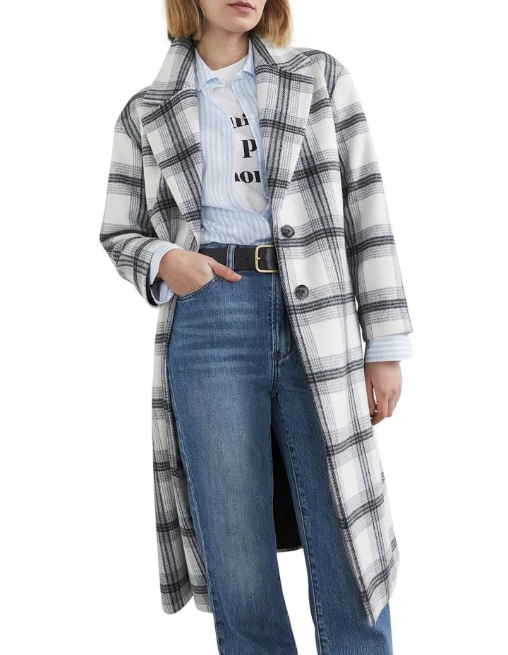 Be bold with our Check Single Breasted Coat. Featuring a relaxed fit, lapel collar and wool blend material, this coat stands out with its oversized check design. Pair with our Je Suis T-shirt and Straight Fit Jean. Our model wears size AU 8/XS. She usually wears a standard AU 8/Extra Small, is 180cm tall, and has a 86cm bust, 95cm hips and 69cm waist.