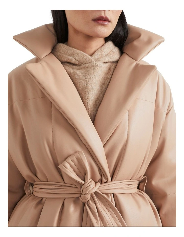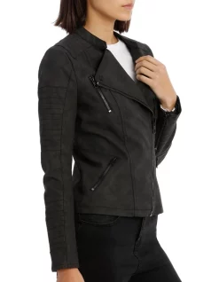 Our Oversized Leather Look Jacket offers a great way to jump on the leather trend. Featuring an oversized, relaxed fit, a matching tie belt and seam detailing in a leather look fabric. Pair with our Flare Jeans and Intarsia Knit. Our model wears size AU 8/XS. She usually wears a standard AU 8/Extra Small, is 178cm tall, and has a 81cm bust, 89cm hips and 64cm waist.