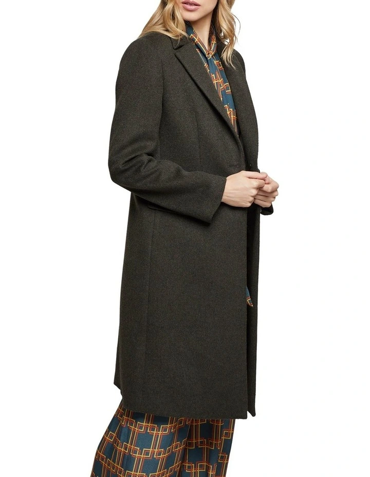 The Ruby Wool Rich Tailored Coat is a smart and sleek outer layer. This womens coat is crafted from a wool-rich blend in a regular fit with a suit jacket design. It features smart lapels, a chest jet pocket, and side flap pockets. Wear some wide-legged pants and a cosy knit for an effortless look.