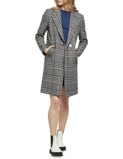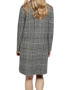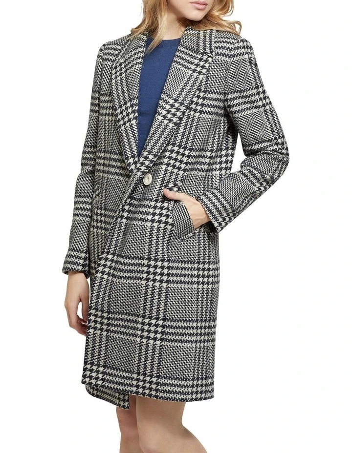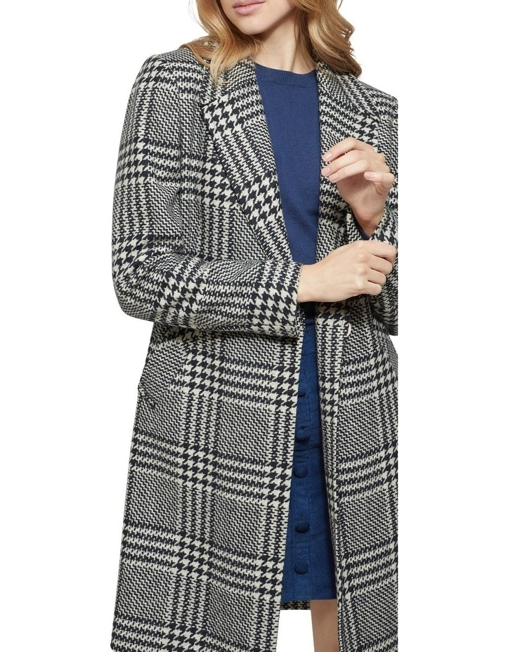 Contemporary winter style, the Sunny Wool Rich Checked Coat is a modern take on a timeless style. This sleek women’s coat is crafted from a wool-rich blend with a classic black and white check pattern. It features wide lapels, side pockets, back vent and is fully lined. It goes perfectly with a knitted dress and some statement boots.Β