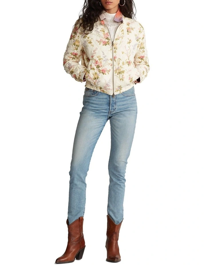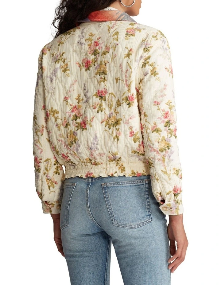 This reversible cotton jacket showcases Polo’s signature pattern play, with a feminine floral print at one side and a serape-inspired motif at the reverse.Relaxed fit. Intended to hit above the hip.Size medium has a 21″ body length and a 31″ sleeve length. Body length and sleeve length are taken from the center back of the neck. Sleeve length changes ” between sizes.Spread collar. Full-zip front.Long sleeves with buttoned barrel cuffs. Elasticized hem.Two front waist angled pockets.Signature embroidered Pony at the left chest of the serape shell. Diamond quilting at the floral shell. Lightly filled.Shell: cotton. Fill: polyester.M