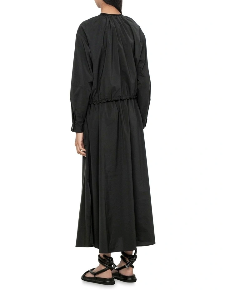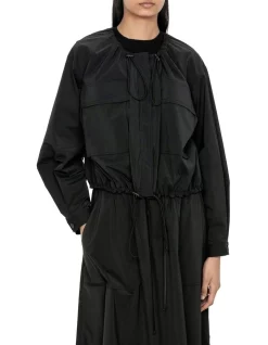 Crafted from a soft and lightweight fabrication, this contemporary bomber jacket is the perfect layering piece. Designed with sporty elements such as a drawstring hem and neckline with toggle details, large patch pockets and topstitching throughout. Style over a fine black knit and pair with the Sporty Taffeta Elasticated Maxi Skirt. Made in Australia